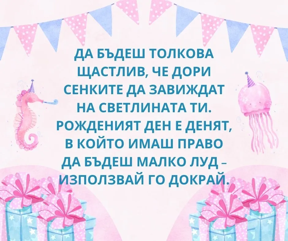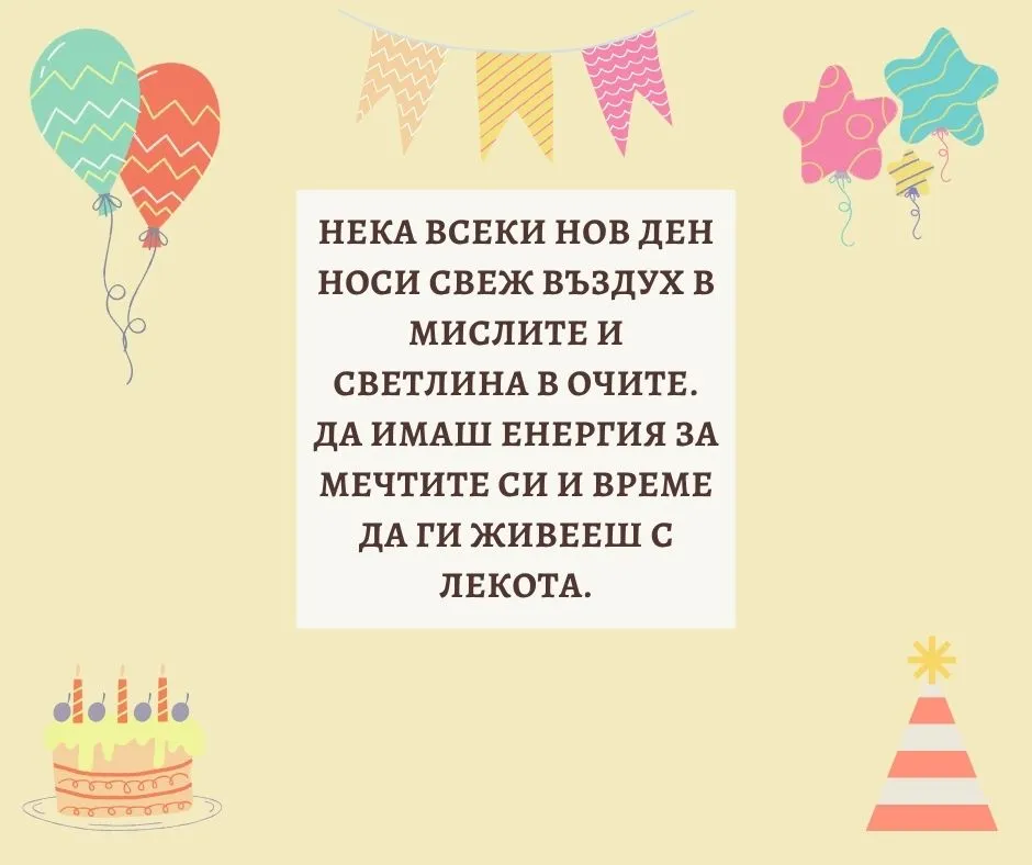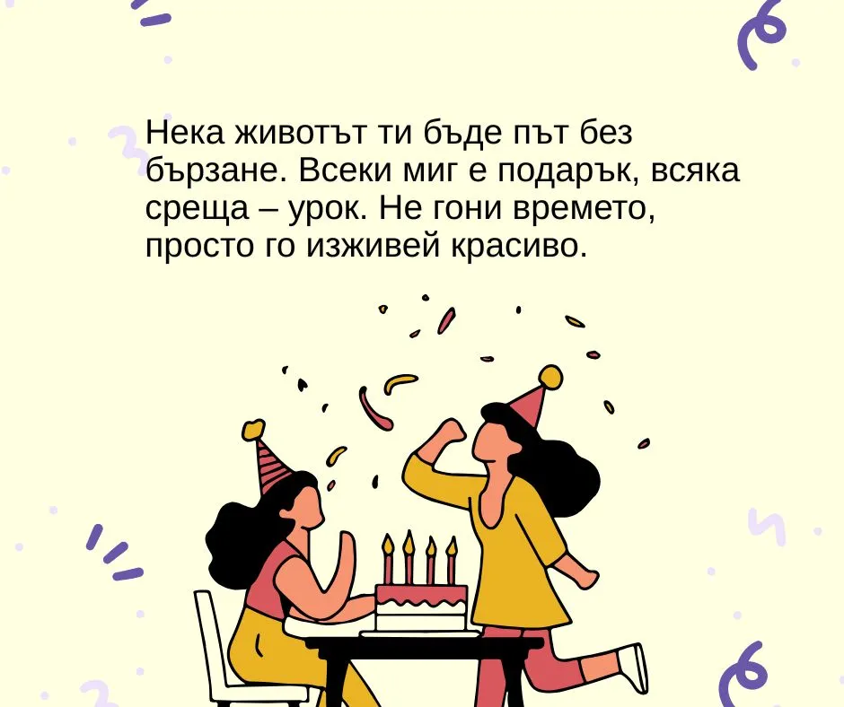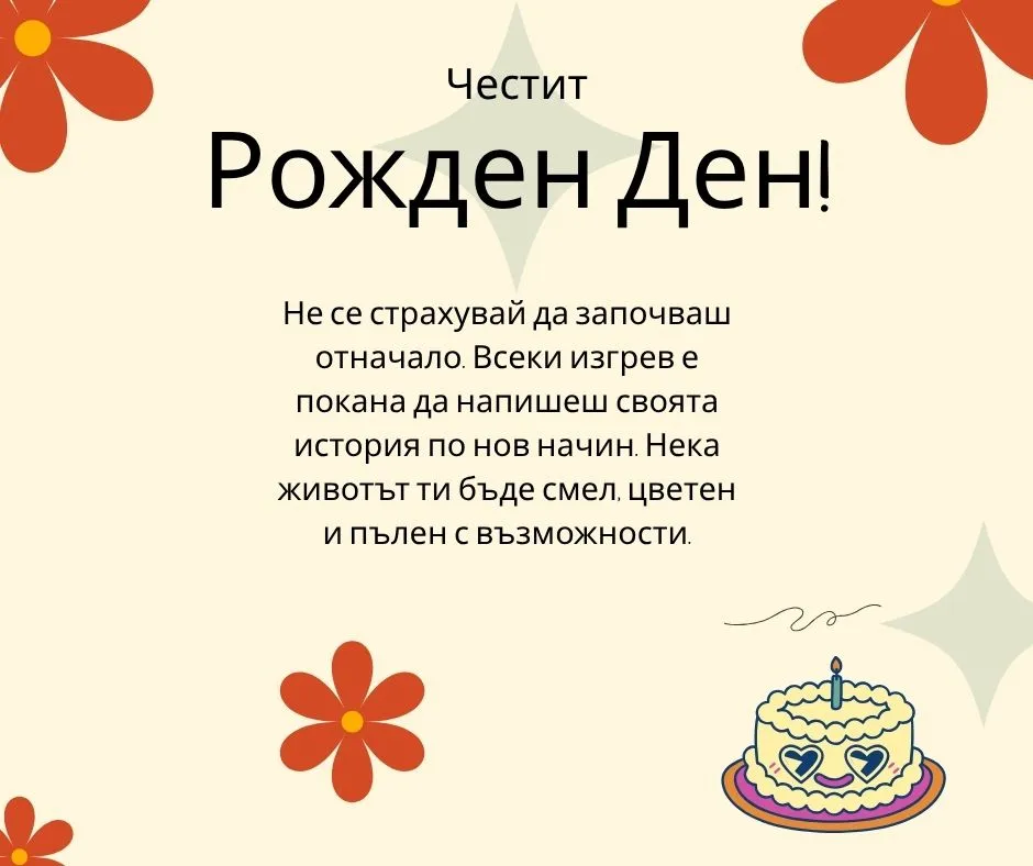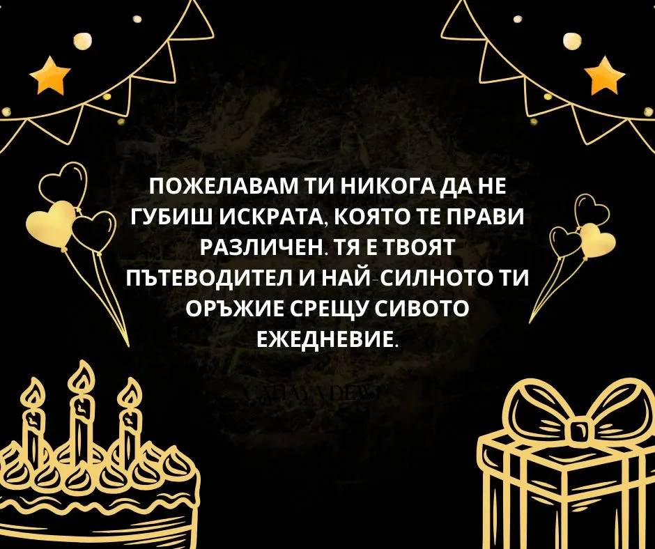 Рожденият ден често е граница – между това, което сме били, и онова, което можем да станем. Пожеланията тук са за новото начало, за смелостта и вътрешната сила.