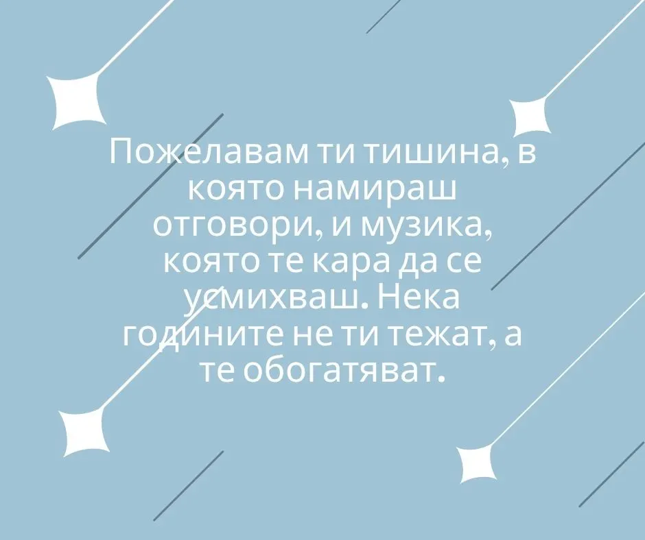Пожеланията, които откри тук, са създадени, за да помогнат да изразиш това, което често не може да се каже с думи. Във всеки ред има топлина, която можеш да споделиш – с приятел, колега или близък човек. Избери онези думи, които звучат искрено за теб, и ги подари с усмивка. Защото едно добро пожелание не е просто поздрав – то е малък жест, който прави деня на някого по-светъл.
